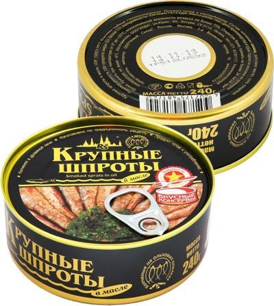 Шпроты ВКУСНЫЕ КОНСЕРВЫ крупные в масле 240 г