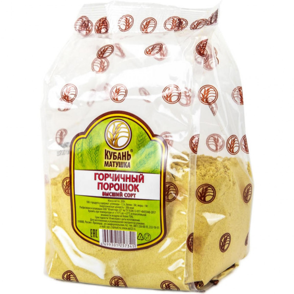 Горчичный порошок КУБАНЬ-МАТУШКА в упаковке 200 г представляет собой высококачественный продукт, произведенный из отборных семян горчицы. Этот порошок обладает насыщенным ароматом и острым вкусом, что делает его идеальным ингредиентом для приготовления различных блюд, соусов и маринадов. Благодаря натуральному составу, горчичный порошок не содержит искусственных добавок и консервантов, что обеспечивает его безопасность и полезность для здоровья. Продукт удобно упакован, что позволяет сохранить его свежесть и аромат на протяжении длительного времени. Горчичный порошок КУБАНЬ-МАТУШКА станет отличным дополнением к любому рациону и идеально подойдет как для домашнего, так и для профессионального использования на кухне.
