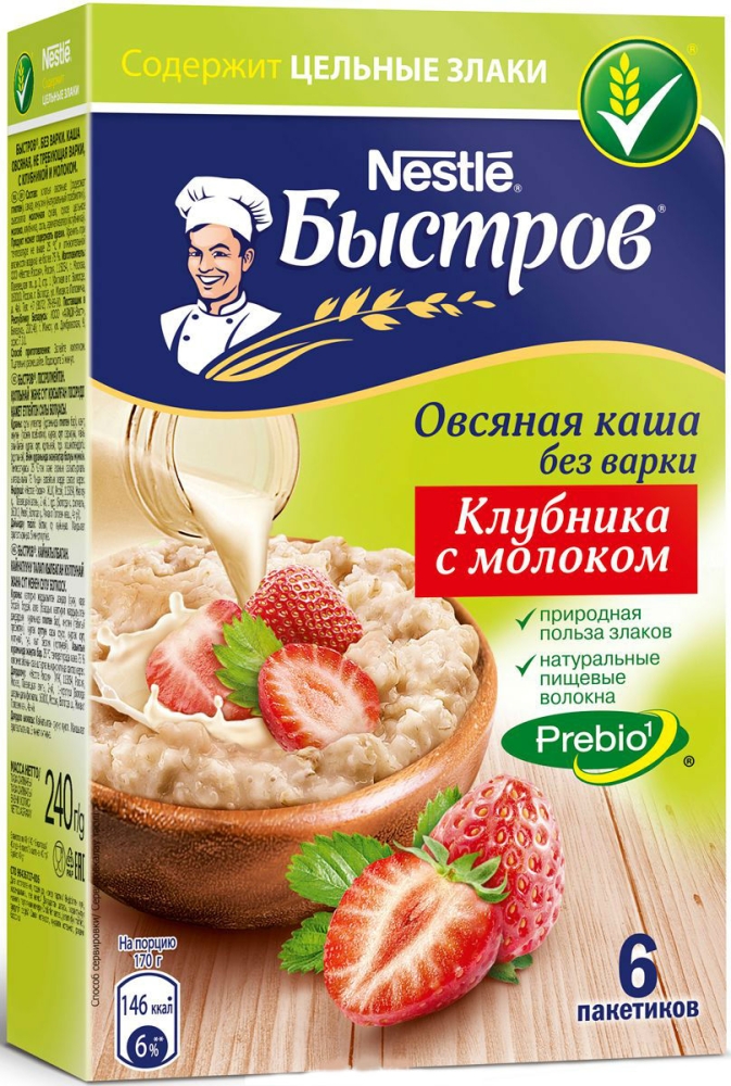Каша моментальная БЫСТРОВ "Клубника с молоком" овсяная 6х40г
