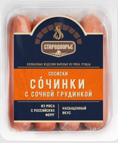 Сосиски СТАРОДВОРЬЕ "Сочинки" с сочной грудинкой 400 г