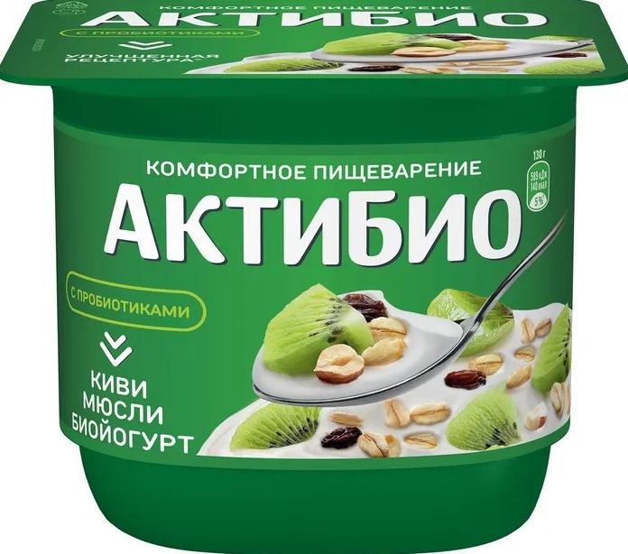 Биойогурт АКТИБИО с киви и мюсли 130 г 3%