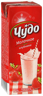 Молочный коктейль ЧУДО "Молочное" клубника 200 мл 2%