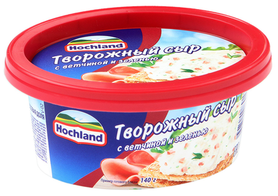 Сыр HOCHLAND творожный с ветчиной и зеленью 140 г 60%