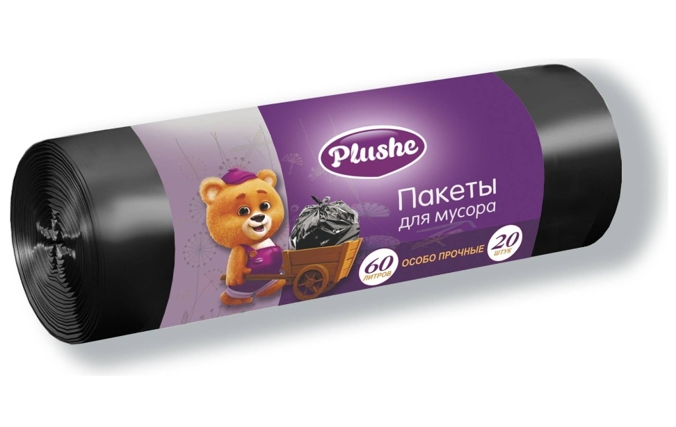 Мешки для мусора Plushe ПВД 180л (88*110), 10шт, 35мкм, Супер прочные, чёрн, 25 в уп