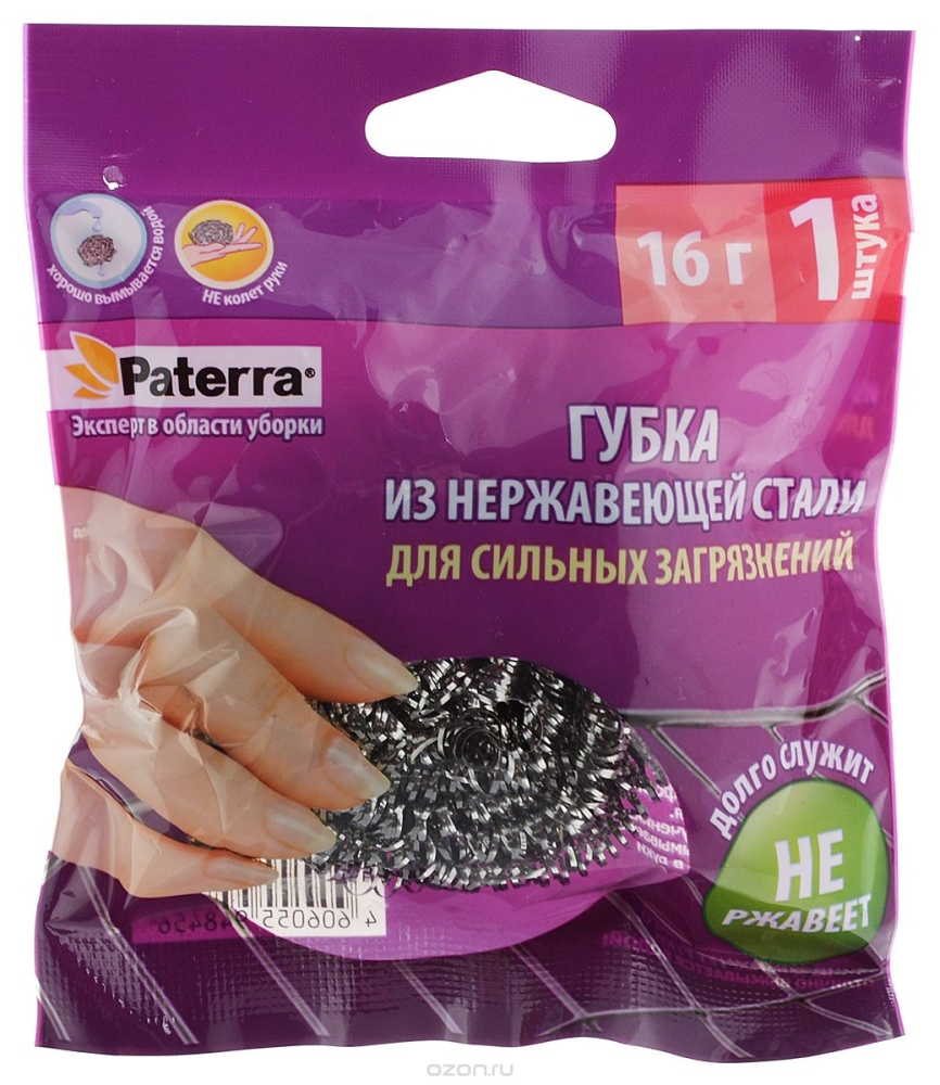 Губка PATERRA металлическая для мытья посуды 16 г