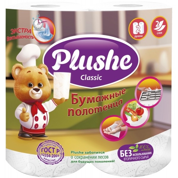Полотенца бумажные PLUSHE "Classic" двухслойные 2 рулона