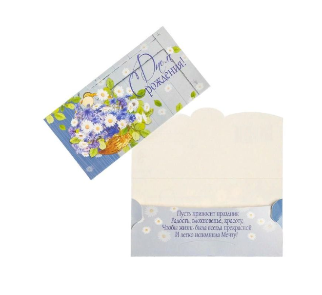 Конверт для денег "С Днем Рождения!" цветы в корзинке — это отличный выбор, который привнесёт атмосферу праздника в ваш дом!