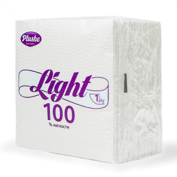 Салфетки Бумажные 22,5*22,5 Plushe Light Super 100, 1слой, 75листов, белый, сплошное, 20 в упаковке (Бел)