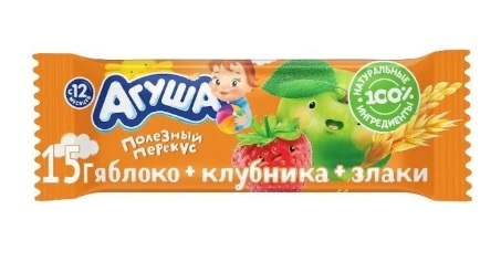 Батончик фруктовый АГУША яблоко-клубника-злаки 15 г
