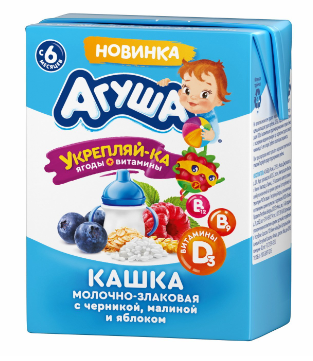 Каша АГУША "Укрепляй-ка" молочно-злаковая с черникой, малиной и яблоком 200 мл