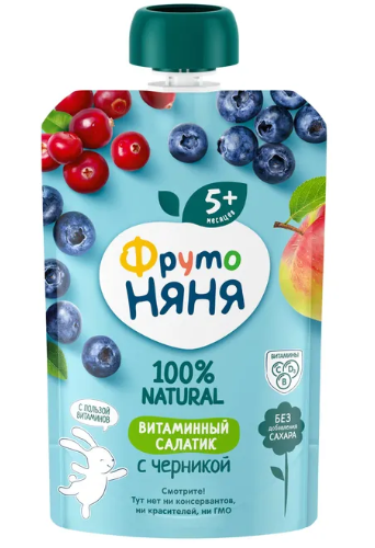 ФрутоНяня Пюре "Витаминный салатик" из яблок, черники, клюквы и брусники уп. 90 г
