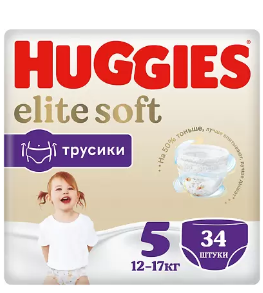 Huggies Elite Soft Подгузники трусики р. 5 (12-17кг) уп. 34