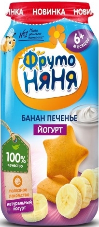Пюре фруктовое ФРУТОНЯНЯ банан, йогурт и печенье 250 г