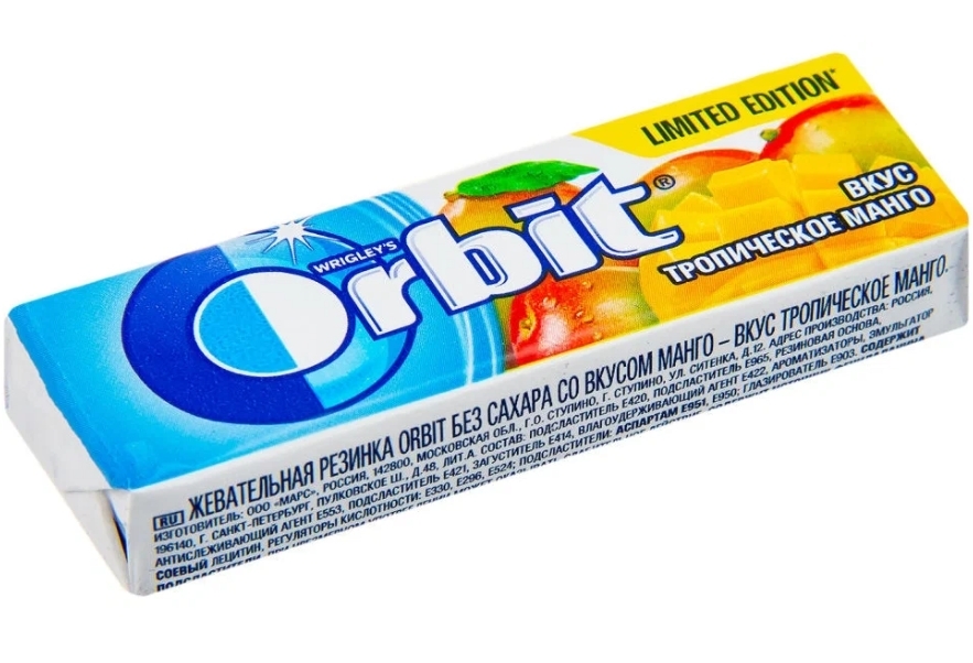 Жевательная резинка ORBIT "Тропическое манго" без сахара 13.6 г