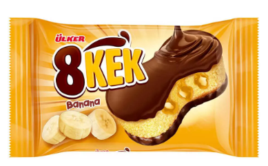 Состав: сахар, пшеничная мука, вода, растительные масла (пальмовое, пальмоядровое), глюкозный сироп, сывороточный порошок (молоко), яйца, осушители (глицерин, сорбит), декстроза, сироп из инвертного сахара, обезжиренный какао-порошок (1,6%), темный шоколад (молоко) (0,6%), соль, модифицированный крахмал, разрыхлители (динатрий дифосфат, гидрокарбонат натрия), консерванты (сорбат калия, пропионат натрия, сорбиновая кислота), эмульгаторы (моно- и диглицериды растительных жирных кислот, соевый лецитин, полирицинолеат полиглицерина), обезжиренное молоко, ароматизаторы, загустители (гуаровая гамма, каррагинан), кислотность регулятор (лимонная кислота), банановый порошок.