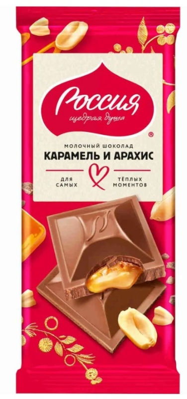 Шоколад РОССИЯ — ЩЕДРАЯ ДУША! молочный с карамелью и арахисом 75 г