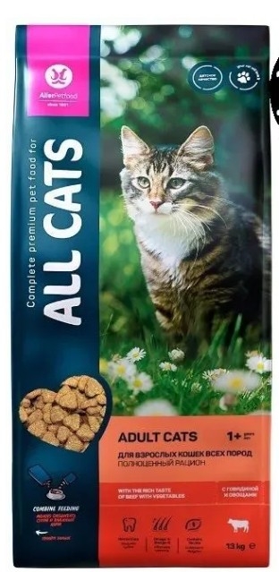 Состав: мясо и продукты животного происхождения (в том числе из говядины мин. 6 %), цельные зерна пшеницы, цельные зерна кукурузы, овощи (горох, свекловичный жом, морковь), пшеничные отруби, кукурузный глютен, масла и жиры, пивные дрожжи, рыба и рыбные субпродукты (источник Омега-3 и Омега-6 жирных кислот), минеральные вещества и витамины, таурин, антиоксиданты, консервант.