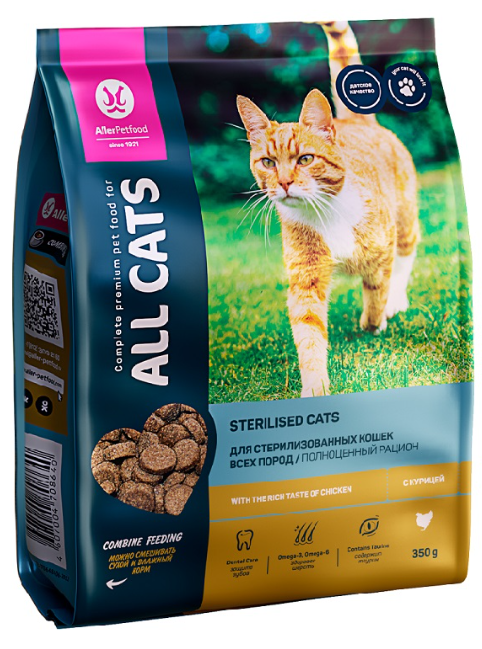 ALL CATS "Sterilised" для стерилизованных кошек с курицей 350 г