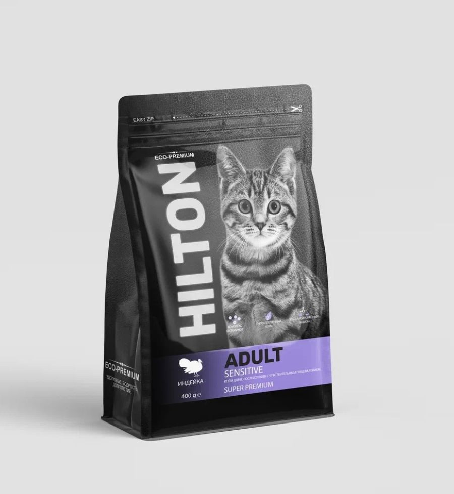 Hilton Сухой полнорационный корм Hilton для взрослых кошек с чувствительным пищеварением с индейкой 400гр