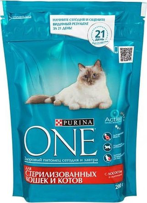 PURINA One лосось и пшеница для стерилизованных кошек и кастрированных котов 200 г