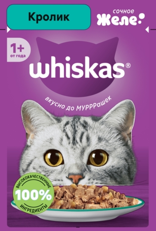 WHISKAS для взрослых кошек желе с добавлением кролика 75 г