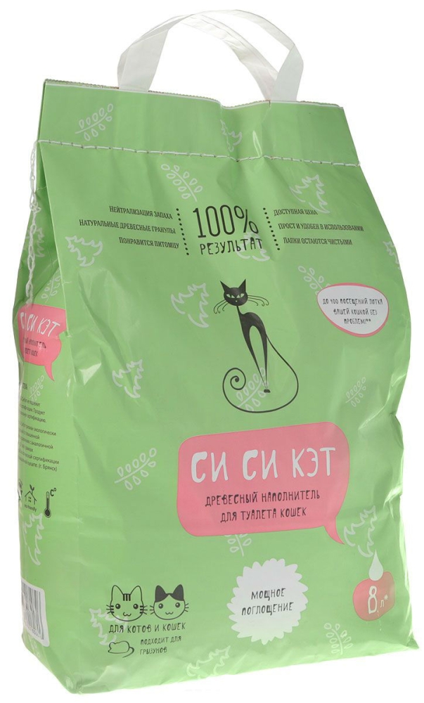 Наполнитель для туалета СИ СИ КЭТ древесный 8 л
