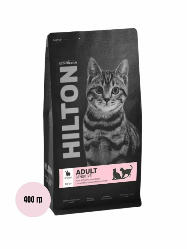 Hilton Сухой полнорационный корм Hilton для взрослых кошек с чувствительным пищеварением с индейкой 400гр