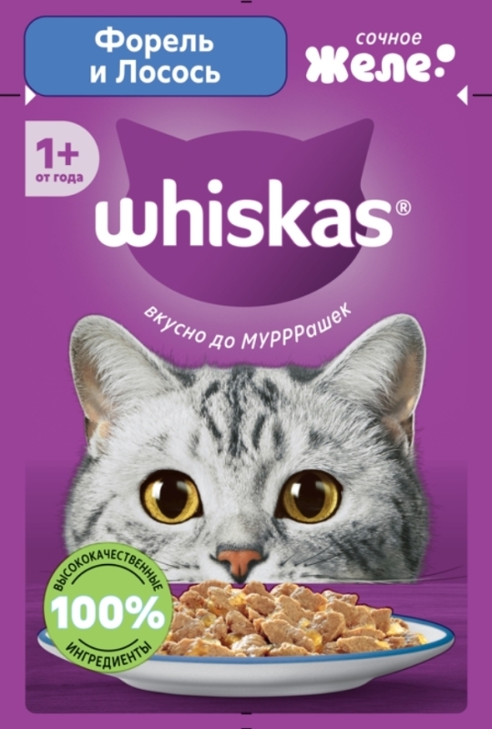 WHISKAS желе с форелью и лососем 75 г