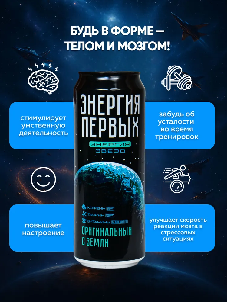 Напиток энергетический ЭНЕРГИЯ ПЕРВЫХ ЭНЕРГИЯ ЗВЕЗД "Оригинальный с Земли" 0.45 л