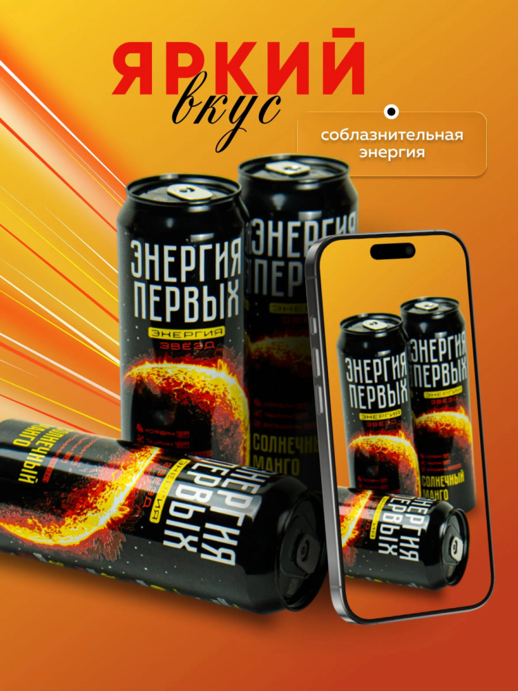 Напиток энергетический ЭНЕРГИЯ ПЕРВЫХ ЭНЕРГИЯ ЗВЕЗД "Солнечный манго" 0.45 л ж/б