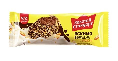 Мороженое ИНМАРКО "Золотой стандарт" эскимо сливочно-шоколадное с арахисом и кукурзными хлопьями 61 г 8%