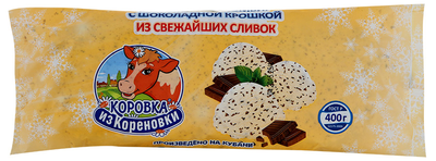 Мороженое КОРОВКА ИЗ КОРЕНОВКИ "Пломбир" ванильный с шоколадной крошкой 400 г 15%