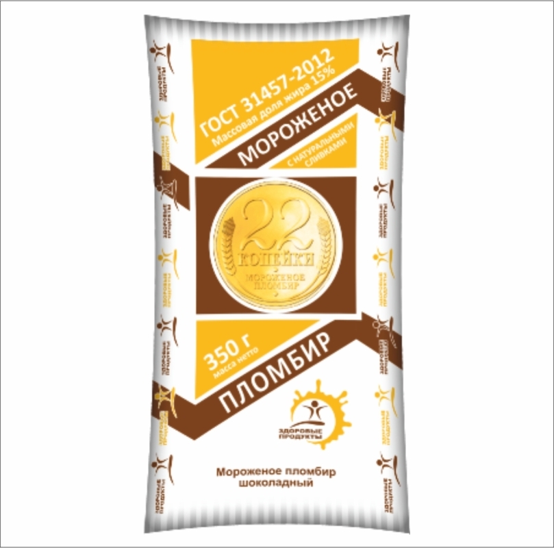 Полено мороженое ЗДОРОВЫЕ ПРОДУКТЫ "22 копейки" шоколадный 350 г 15%